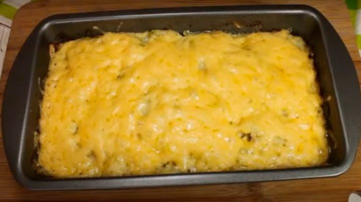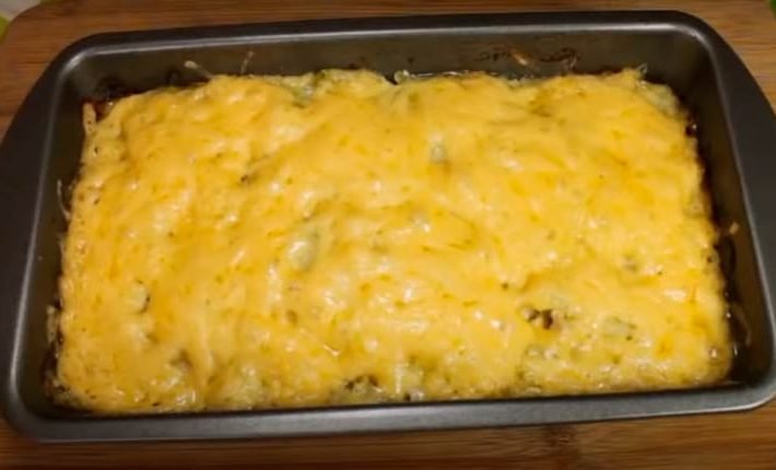 Nakonec přidejte majonézu a vše řádně promíchejte. K ruce si připravte plech s pečícím papírem a na jeho dno navrstvěte směs zeleniny a masa. Rovnoměrně rozprostřete, zakryjte alobalem a dejte zapéct do trouby na zhruba půl hodiny při 200 stupních Celsia. Asi sedm minut před koncem pečení odstraňte hliníkovou fólii a posypte pokrm strouhaným tvrdým sýrem a nechte zezlátnout.