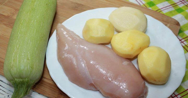 Zapečené brambory s kuřecími prsy a cuketou - postup přípravy