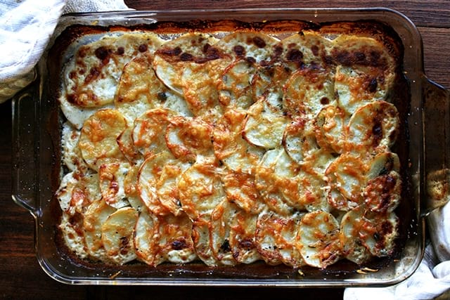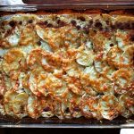 Když je omáčka hotová, můžete jít na to hlavní. Jako první oloupejte brambory, nakrájejte je na plátky a potom je vložte do zapékací mísy. Osolte je, opepřete je a potom lehce zalijte připravenou omáčkou a přidejte trochu strouhaného sýru. Potom bude následovat další vrstva, opět z brambor a zase z omáčky a následně sýru. Takto až do chvíle, kdy dáte vrstvu brambor a tu zalijete omáčkou. Následně zasypete parmezánem a jste připraveni.