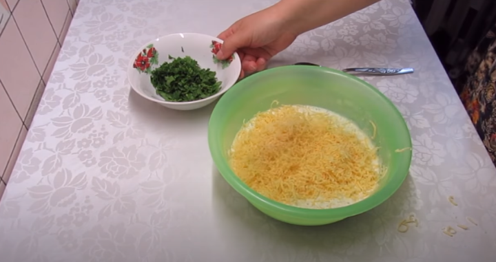 Sýr nastrouhejte na hrubém struhadle a nasypejte ho do smetanové směsi.