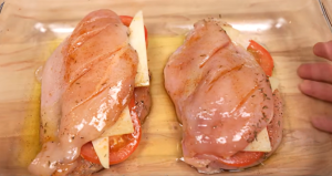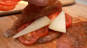 Zapečené kuřecí kapsy plněné rajčaty a sýrem - postup přípravy