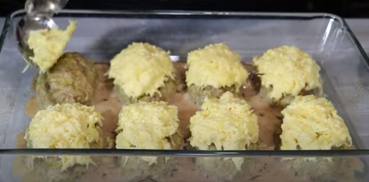 Z masové směsi odebírejte menší kousky asi ve velikosti dlaně a tvarujte z nich kuličky či šištičky. Ty vyrovnejte do připraveného pekáčku, zakryjte ho hliníkovou fólií a vložte do předehřáté trouby péct po dobu 40 až 45 minut.