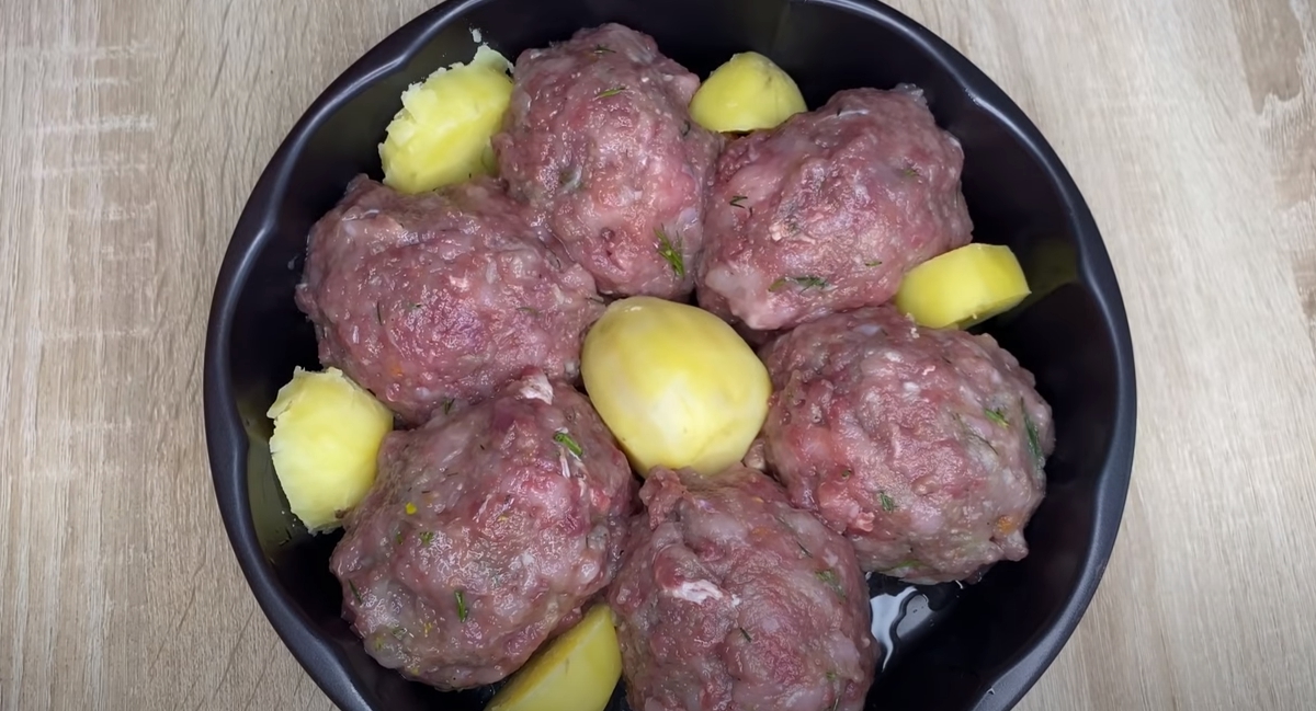 Zapečené masové koule s bramborami - postup přípravy