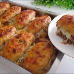 V momentu, kdy bude sýr roztavený na povrchu a krásně zezlátlý, je pokrm upečený. Podávejte jej teplý třeba se zeleninovým salátem. Přejeme dobrou chuť.
