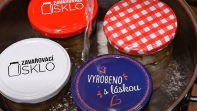 Hrdlo láhve otřete ubrouskem, následně ho přiklopte víčkem, které však nedotahujte na sílu. Sklenice vložte do hrnce s vodou a zavařujte je při teplotě 95 °C po dobu 60 minut.