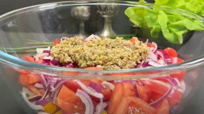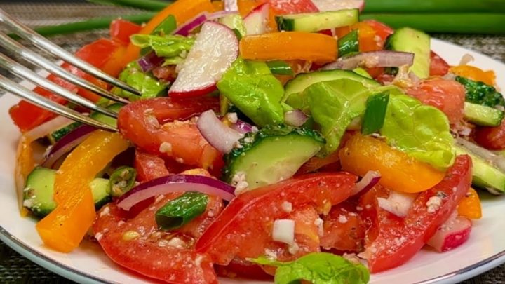 Díky tomuto receptu získáte osvěžující svačinku i chutnou přílohu k masu. Zeleninový salát s ořechy je skvělou kombinací šťavnatých a křupavých komponentů.