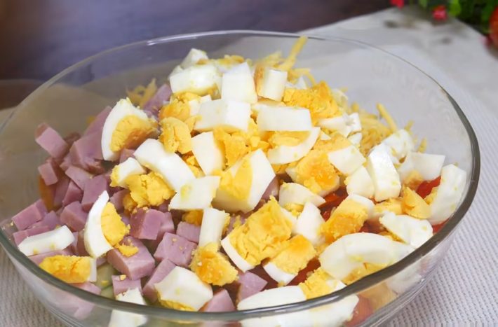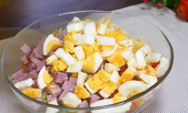 Zeleninový salát se šunkou a sýrem - postup přípravy