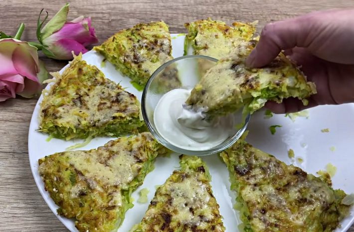 Hotovou zelnou placku nechte mírně zchladnout, kráječem na pizzu ji rozkrájejte na trojúhelníčkové porce a podávejte se zakysanou smetanou či s jinou oblíbenou studenou omáčkou.