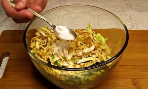 Zelný salát s vaječnou smaženkou - postup přípravy