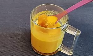 Pokud toužíte po koncentrovanější směsi, smíchejte v misce 1 polévkovou lžíci kurkumového prášku s trochou pepře a tuto směs zalijte 100 gramy tekutého medu. Směs míchejte tak dlouho, dokud nezískáte hustou a homogenní pastu. Tu pak užívejte po jedné čajové lžičce každý den, maximálně 3 dny po sobě. Dávku zlatého medu nechte v ústech nejprve úplně rozpustit a až poté ji spolkněte.