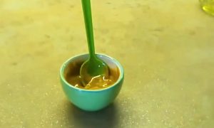 2. Do směsi přidejte špetku mletého pepře (je lhostejné, zda použijete pepř černý, bílý nebo jakýkoliv jiný, ale nejlepší ze všech je ten červený) a lžíci medu a míchejte tak dlouho, dokud se med nerozpustí.